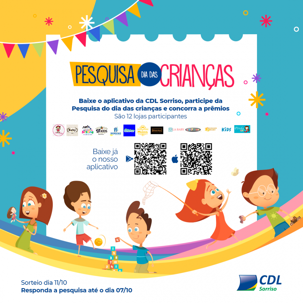 “O objetivo da pesquisa é medir a intenção de compras dos consumidores do Sorriso para o Dia das Crianças. Aspectos como se o consumidor pretende comprar presentes; até quanto pretende gastar; quais os itens que ele pretende levar e de que forma pretende fazer as compras (se presencial nas lojas, por meio de condicional ou aplicativos e sites de compras). Ela serve para que possamos traçar um perfil do nosso consumidor e nortear os lojistas para as próximas campanhas”, finalizou o presidente da CDL sorriso.