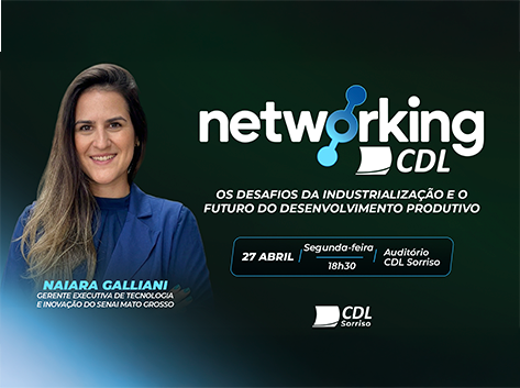 A CDL Sorriso realiza na próxima segunda-feira, dia 27 de abril, mais uma edição do Networking CDL. Nesta edição, o encontro traz um tema essencial para quem pensa no futuro dos negócios: os desafios da industrialização e o futuro do desenvolvimento produtivo.